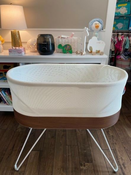 • Responsive soothing: When your baby fusses or cries, the bassinet responds with increasing levels of motion and sound to calm them down.
